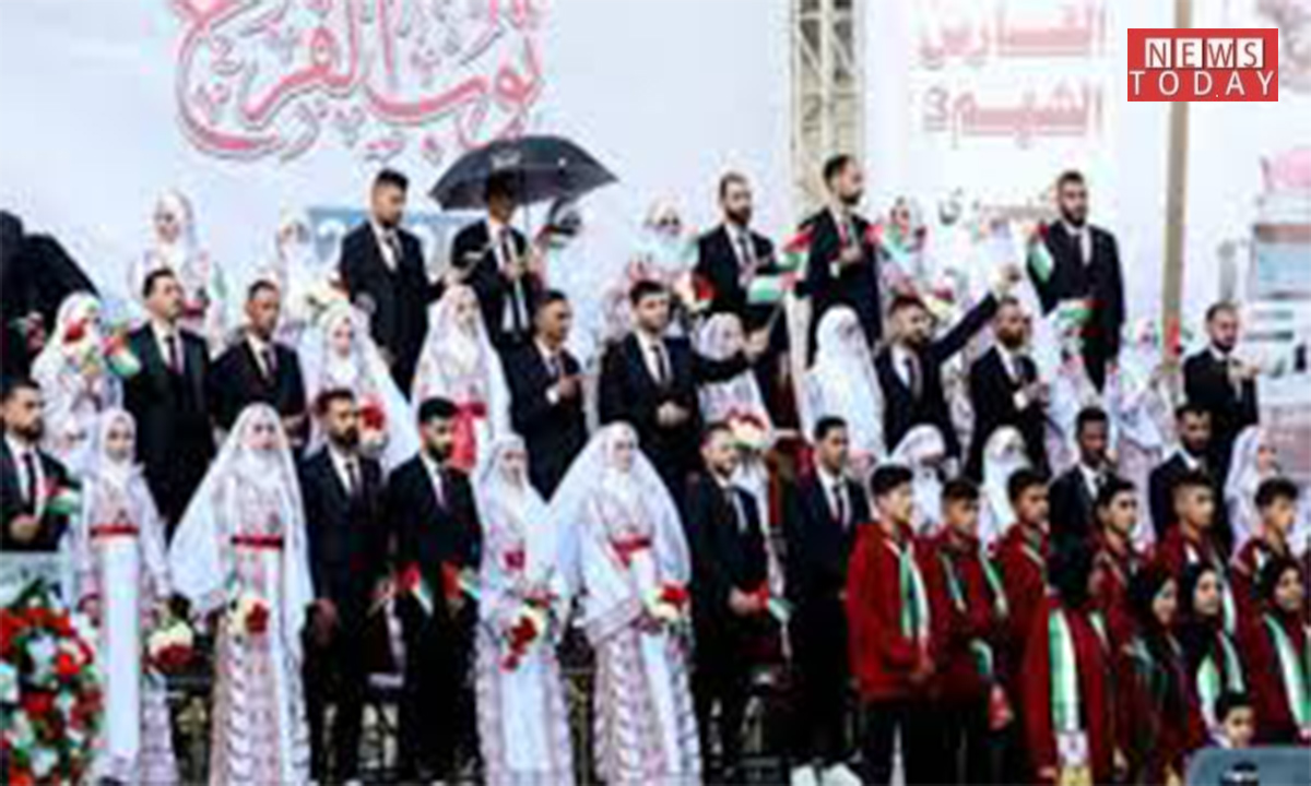 غزہ میں جنگی تباہ کاریوں کے دوران 54 جوڑوں کی اجتماعی شادی کی تقریب