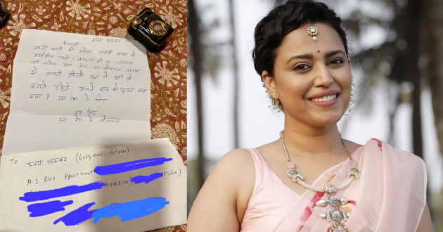 بھارت میں سرکار پر تنقید جان لیوا بن گئی ،اداکارہ سوارا بھاسکر کو بھی دھمکی آمیز خط