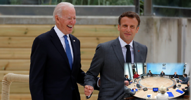 بائڈن اور میکرون کی جرمنی میں جی 7 بیٹھک کے دوران ہونے والی خفیہ بات چیت لیک ہو گئ