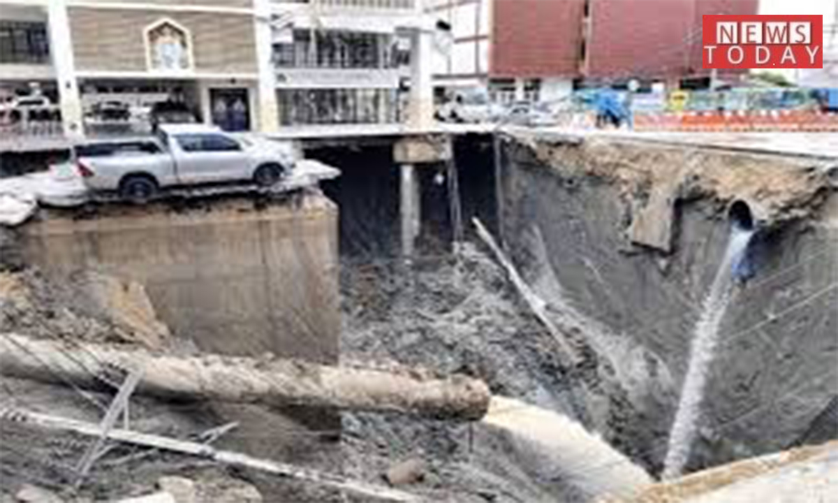 بینکاک کی مصروف ترین شاہراہ اچانک 160 فٹ نیچے دھنس گئی