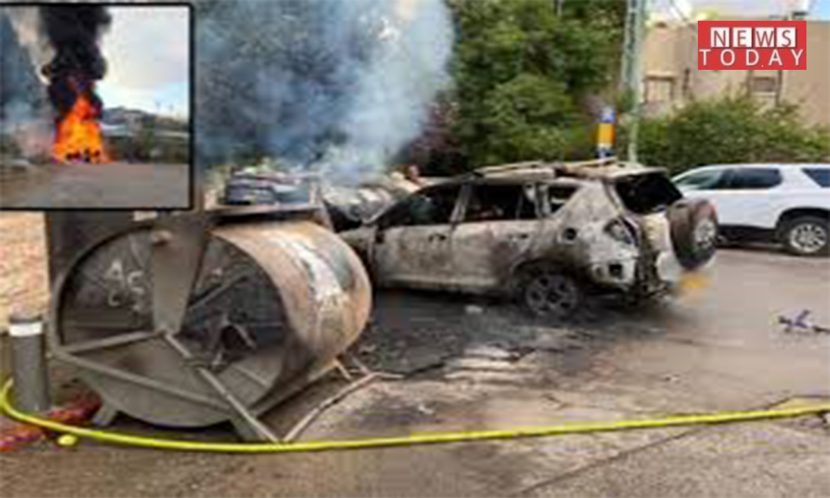 نیتن یاہو کے گھر کے سامنے ٹینک اور گاڑی کو احتجاجی مظاہرین نے آگ لگا دی