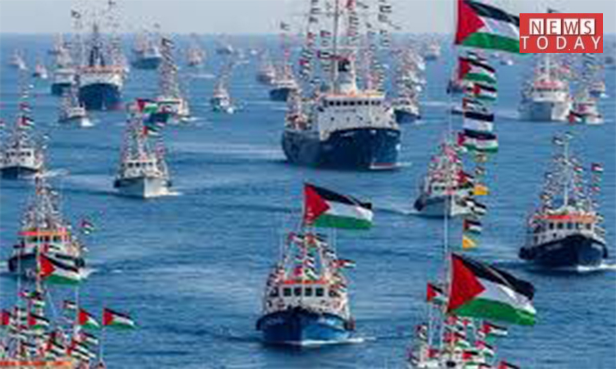 ان گنت کشتیوں اور جہازوں پر مشتمل قافلہ تیونس سے غزہ کی جانب روانہ