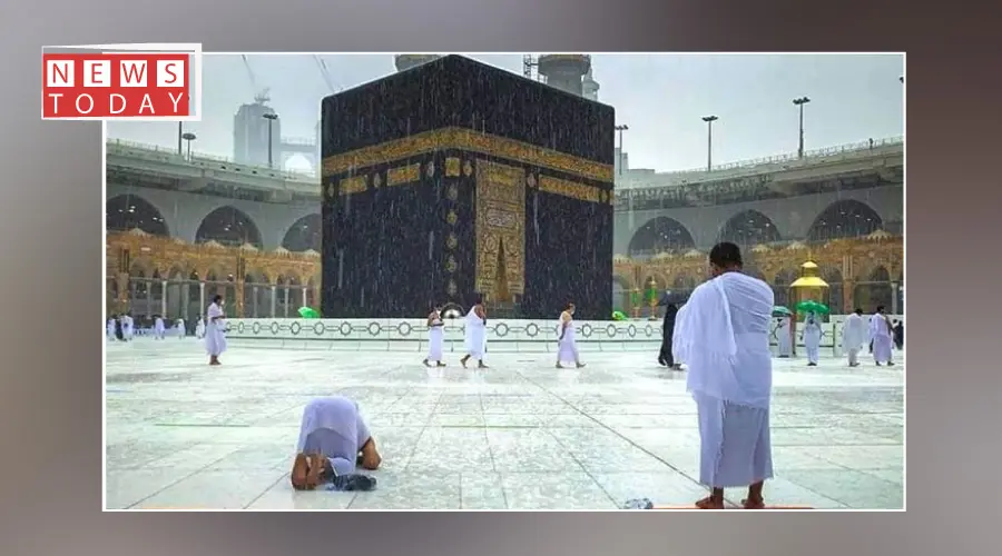 مکہ میں موسلا دھار بارش، عمرہ زائرین کے طواف جاری رکھنے کے روح پرور مناظر