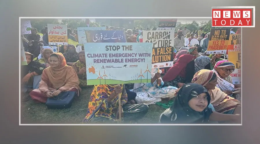 کراچی میں موسمیاتی تبدیلیوں کے خلاف کلائمیٹ مارچ کے شرکاء نے فلسطین کے ساتھ اظہار یکجہتی کیا