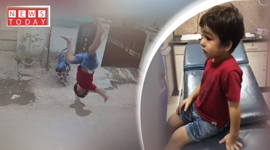 کراچی میں دوسری منزل سے گرنے والا بچہ معجزانہ طور پر بچ گیا , ویڈیو وائرل