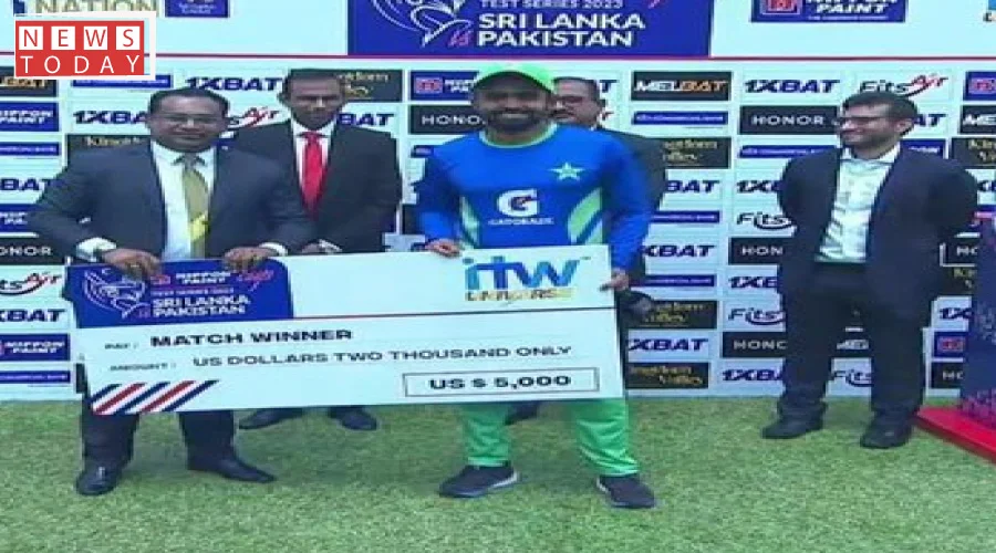 گال ٹیسٹ میں ناقابل شکست 208 رنز بنانے والے سعود شکیل نے پلیئر آف دی میچ کا ایوارڈ لیا